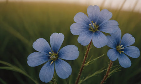 Flax (Linum usitatissimum) flowers in the field