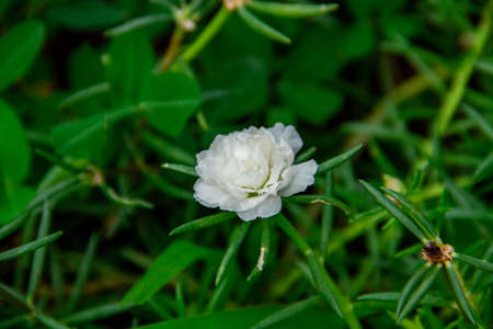 Close-up view of portulaca grandiflora flowers with green leaves in the garden