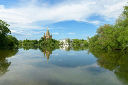 Kolonistsky park or Colonizer's Park in Peterhof (Petergof) near Saint-Petersburg, Russia. View on The Cathedral of Saints Peter and Paul