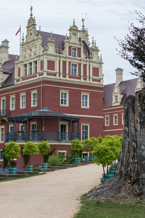 Beautiful red castle of Fuerst Pueckler in Bad Muskau Germany