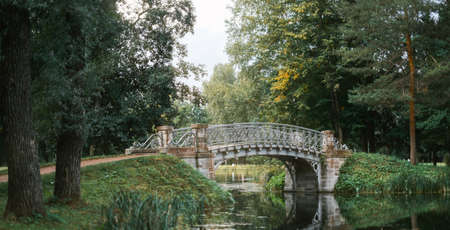 Old bridge over the river in the summer park Gatchina.