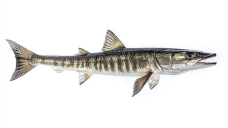 barracuda displays its distinct elongated body and sharp teeth highlighting the features that define this predatory fish species in a striking manner.