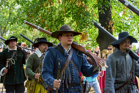 Brno, Czech Republic - August 18, 2018: Historical reenactment Day of Brno. Infantrymen in historical costumes