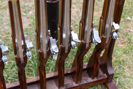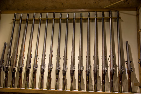musket weapons are in a row traditional weapons of america