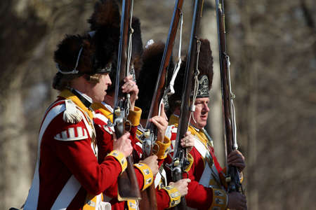Memorial Day Celebration - Parker Revenge Battle Demonstration held in Lexington, MA on Sunday, April 20, 2014.Hundreds of British and Colonial Re-enactors engaged in a tactical weapons demonstration showing the running battle that took place along this d
