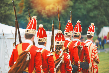 TORONTO – JUNE 17, 2017: Soldiers at the battle of Black Creek revolutionary war re-enactment in Black Creek Pioneer village in June 17, 2017 in Toronto, Canada
