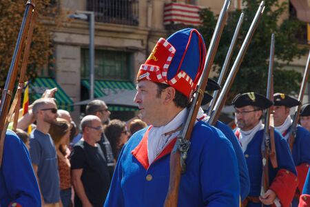 Barcelona, Catalonia, Spain, September 11, 2017: historic cultural demostration from Catalonia during Rally support for independence of Catalunya during the national day