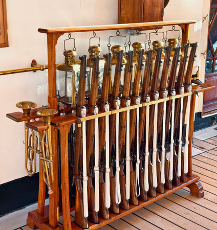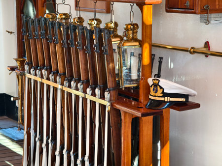 Perthshire Scotland - September 10 2019: Fire arms and armor inside of Blair Castle in the Scottish Highlands, UK September 10, 2019