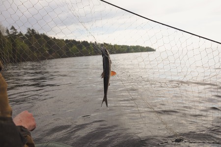 Perch on the hook. Spinning fishing.