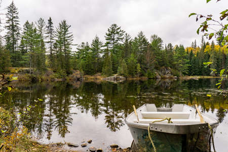 rowing boat on a lake on a fall day in Mont Tremblant National Park, in Laurentides region of Quebec, Canada