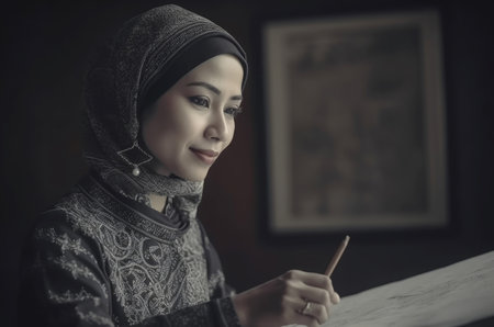 Beauty malay muslim teacher scarf. Tradition diversity asian beautiful job. Generate Ai