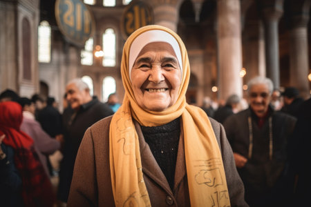muslim family at the mosque during eid mubarak celebration