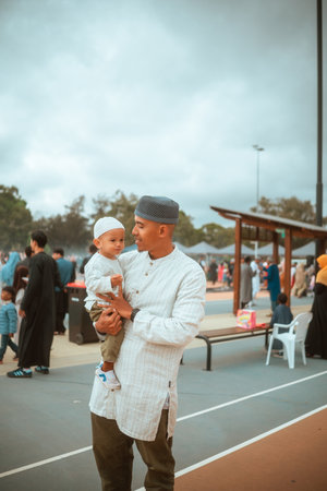 MILAN, ITALY - JULY 7: Muslim people take part in Eid, public celebration for the end of Ramadan on JULY 7, 2016 in Milan.