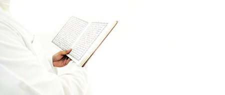 Man Holding and reading quran. Islamic Background