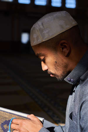 Muslim young man reading a Koran