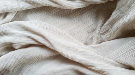 A beautifully detailed close-up of soft, wrinkled fabric in natural beige tones, showcasing its delicate texture and gentle folds, ideal for various creative projects.