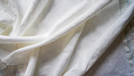 A close-up view of soft white fabric showcasing delicate textures and natural drapes, perfect for enhancing various design projects, backgrounds, and aesthetic needs.