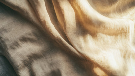 This close-up image features soft, natural linen fabric with a textured surface, perfect for elegant design projects and creative applications, evoking warmth and comfort.