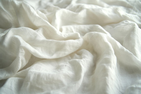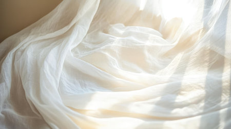 A captivating close-up of soft white fabric draped elegantly, showcasing delicate textures and folds illuminated by natural light, perfect for various design applications.