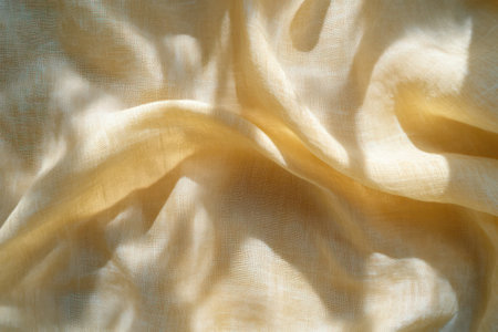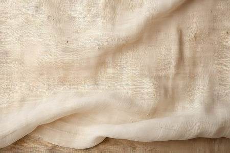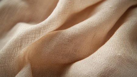 A captivating close-up of soft textured fabric drapery in natural beige tones. The gentle creases and folds create an elegant and cozy atmosphere, perfect for artistic projects and interior design.