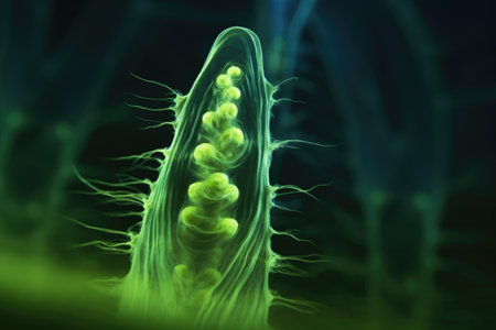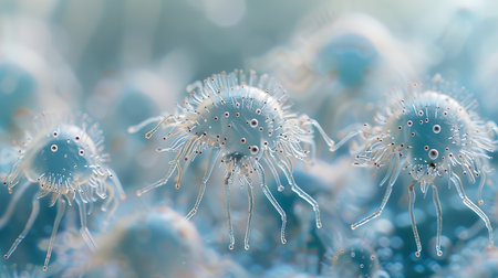 A detailed illustration of a microscopic organism, showcasing its complex structure and vibrant colors. Perfect for scientific and educational purposes.