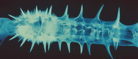 X-ray view reveals intricate structure of sea urchin spines showcasing radial symmetry