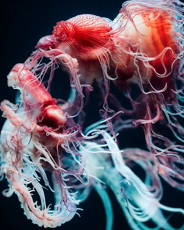 A deep stunning-sea siphonophore drifting gracefully in the ocean depths