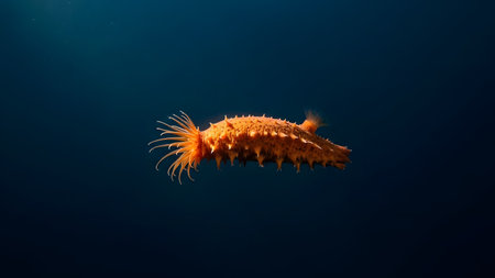 Explore the beauty of a vibrant sea creature showcasing striking textures and colors, gracefully moving through its underwater habitat in a serene environment.
