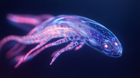 deep-sea creature with tentacles and bioluminescent patterns in water, created with generative ai