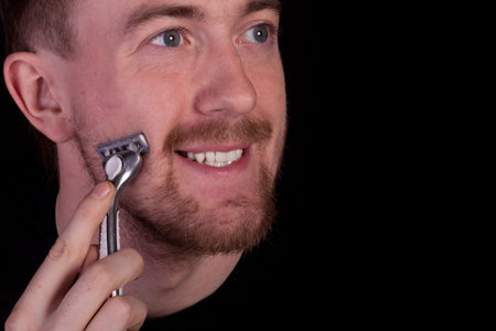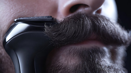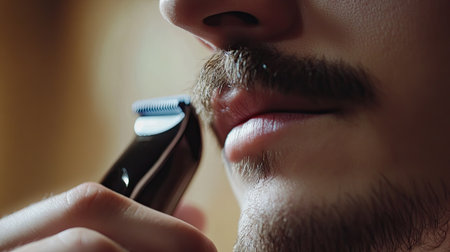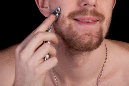 trimmer shaving process soft focus close male portrait of skin and stubble