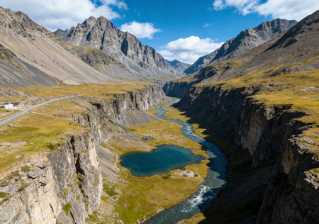 Natural landscape of rivers and mountains between valleys