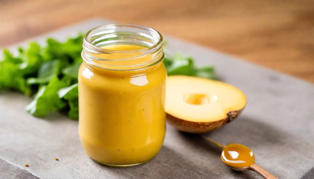 Homemade honey mustard salad dressing in a jar