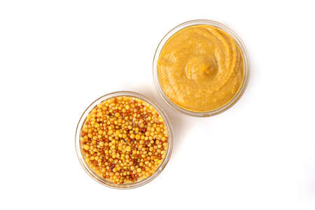 Whole grain mustard spread isolated on white background