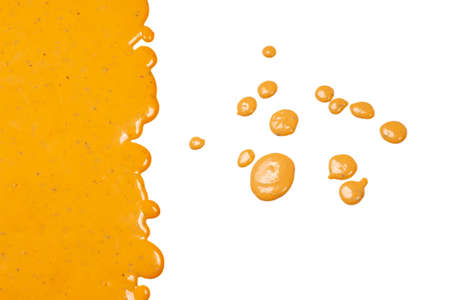 Mustard sauce isolated on a white background, top view. Honey mustard sauce splash.