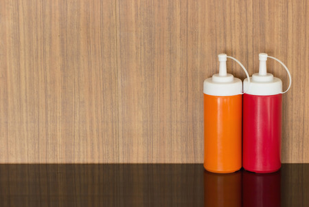 Pepper sauce and tomato sauce on glass