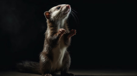 Portrait of a ferret on a black background. Studio shot.