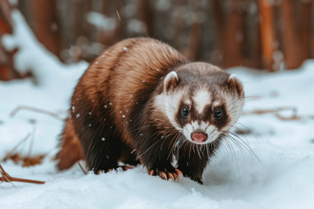 Playful Ferret Frolicking in Snowy Park