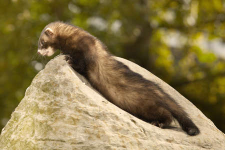 Ferret posing and relaxing on stone rock