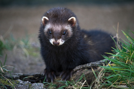 Cute little ferret in the spring forest. Pet animals.