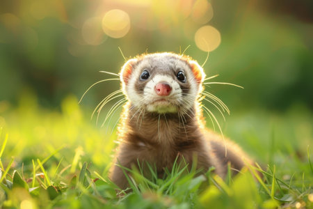 a cute little ferret on the green grass
