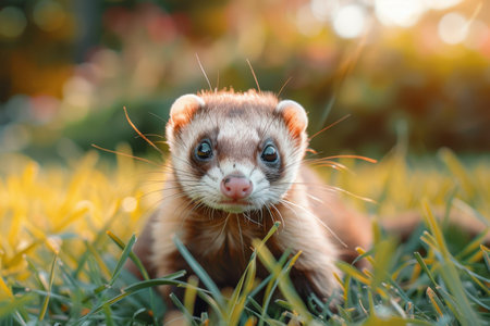 cute ferret on the summer lawn