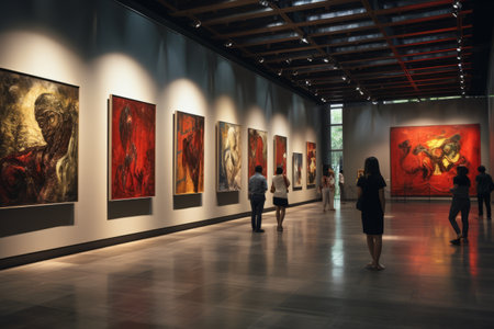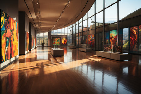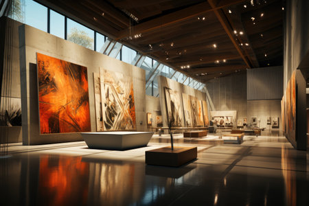 Art gallery with modern paintings on display
