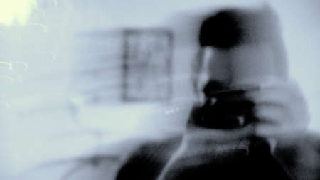 Artistic blurred photo of a photographer taking a selfie in the mirror. Abstract blur photography. Art concept