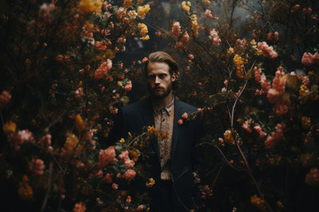Blossoming Beauty: A Man Embracing Natures Delight Amidst Branches and Flowers