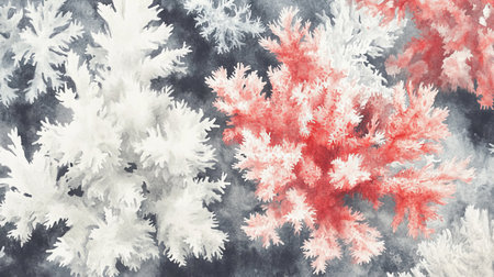 Abstract Watercolor Painting, Pale Grey, White, Red Coral-Like Formations, Elegant, Dreamy Design