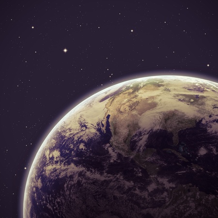 The earth from space in a star field. Elements of this image furnished by NASA.