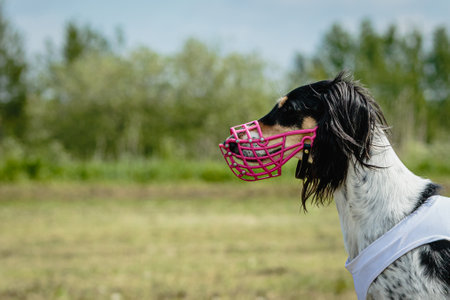 Large dog pooch muzzled outdoor