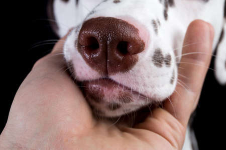 Macro shot of dog muzzle and detailed nose