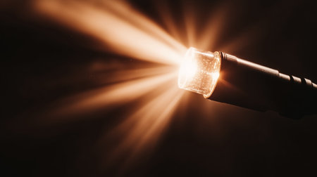 A captivating sparkler emits a bright glow in the night, creating a magical atmosphere. Bokeh lights add depth and charm, perfect for celebrations.