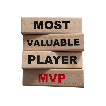 MVP - Most Valuable Player symbol. wooden blocks with words MVP. Business and MVP concept. wooden blocks. Copy space.3D rendering on white background.